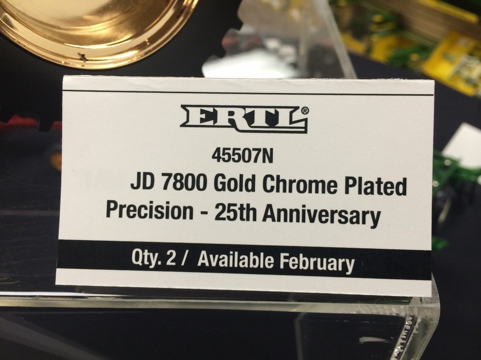 Ertl/TOMY will be offering a limited number of these special edition model 7800 Gold/Chrome plated tractors through John Deere dealers in celebration of 25 years of producing ERTL Precisions. There has only been 1000 of the models released. The attached images are from the display model at the 2015 National Farm Toy Show in Dyersville Iowa.